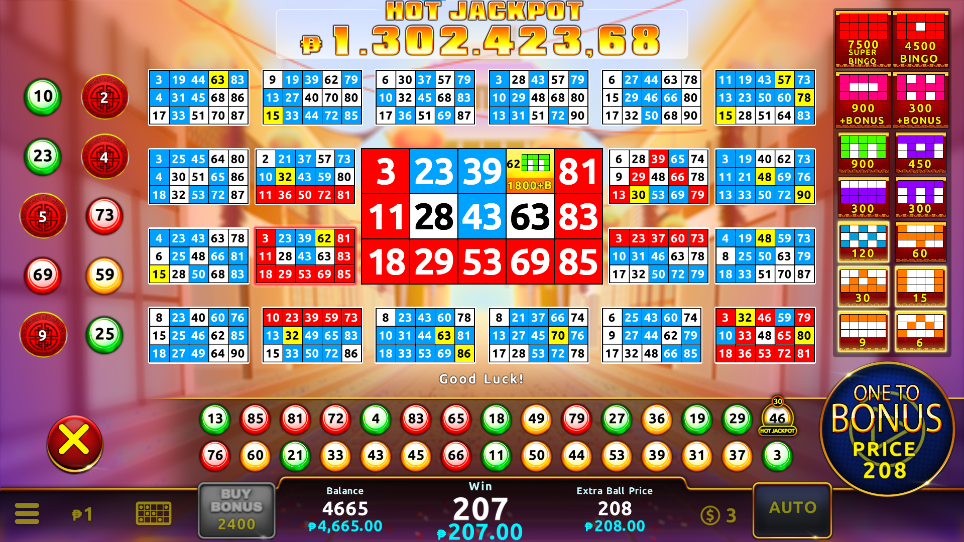 • Apuesta variable de 1 a 10 por cartón.